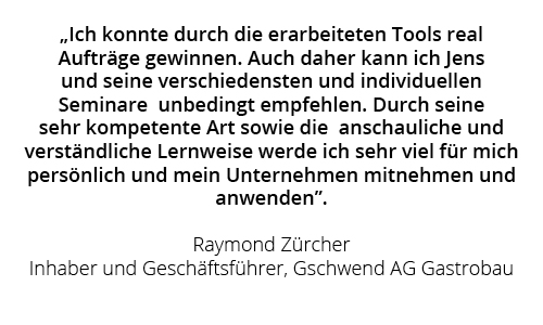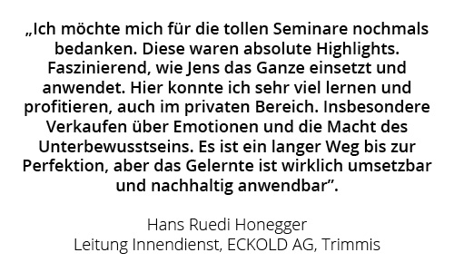 Über 30 Jahre Erfahrung, mehr als 1 Million Teilnehmer, 23 Trainings-Awards. Wir freuen uns über so viel positives Feedback. Gerne stellen wir für Sie auch einen Kontakt zu Teilnehmern her, welche gerne aus erster Hand über ihre Erfahrungen mit uns berichten.